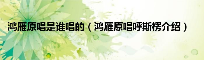 大家好,伊人来为大家解答以上问题。鸿雁原唱是谁唱的,鸿雁原唱呼斯楞介绍很多人还不知道,现在让我们一起来看看吧!