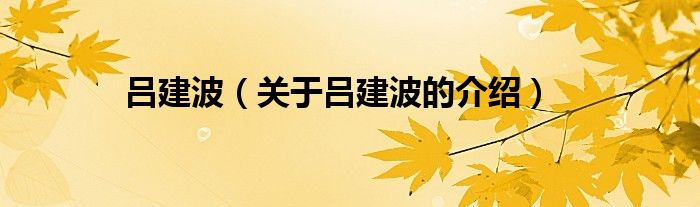 大家好,小新来为大家解答以上的问题。吕建波,关于吕建波的介绍很多人还不知道,现在让我们一起来看看吧!