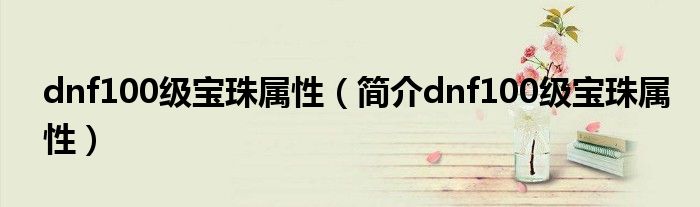 大家好,伊人来为大家解答以上问题。dnf100级宝珠属性,简介dnf100级宝珠属性很多人还不知道,现在让我们一起来看看吧!