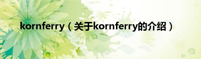 大家好,小新来为大家解答以上的问题。kornferry,关于kornferry的介绍很多人还不知道,现在让我们一起来看看吧!