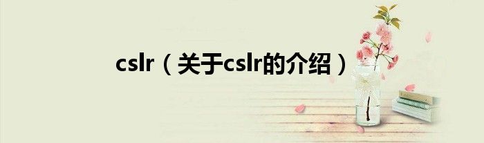 大家好,小新来为大家解答以上的问题。cslr,关于cslr的介绍很多人还不知道,现在让我们一起来看看吧!
