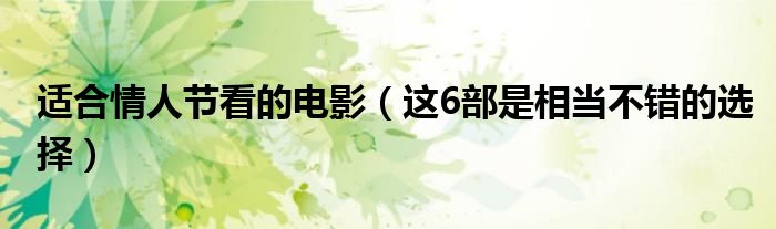 大家好,伊人来为大家解答以上问题。适合情人节看的电影,这6部是相当不错的选择很多人还不知道,现在让我们一起来看看吧!