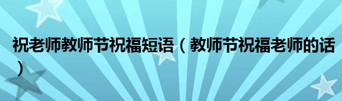 大家好,伊人来为大家解答以上问题。祝老师教师节祝福短语,教师节祝福老师的话很多人还不知道,现在让我们一起来看看吧!