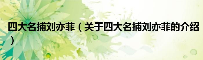大家好,小新来为大家解答以上的问题。四大名捕刘亦菲,关于四大名捕刘亦菲的介绍很多人还不知道,现在让我们一起来看看吧!