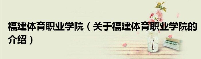 大家好,小新来为大家解答以上的问题。福建体育职业学院,关于福建体育职业学院的介绍很多人还不知道,现在让我们一起来看看吧!