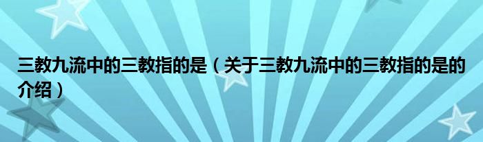 大家好,小新来为大家解答以上的问题。三教九流中的三教指的是,关于三教九流中的三教指的是的介绍很多人还不知道,现在让我们一起来看看吧!