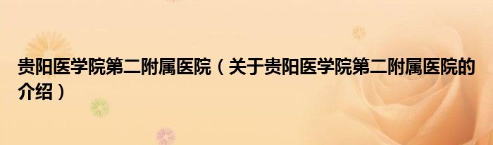大家好,小新来为大家解答以上的问题。贵阳医学院第二附属医院,关于贵阳医学院第二附属医院的介绍很多人还不知道,现在让我们一起来看看吧!