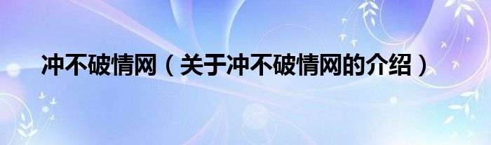 大家好,小新来为大家解答以上的问题。冲不破情网,关于冲不破情网的介绍很多人还不知道,现在让我们一起来看看吧!