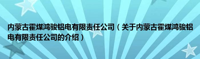 大家好,小新来为大家解答以上的问题。内蒙古霍煤鸿骏铝电有限责任公司,关于内蒙古霍煤鸿骏铝电有限责任公司的介绍很多人还不知道,现在让我们一起来看看吧!