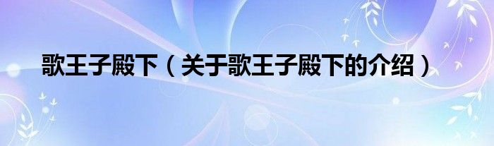 大家好,小新来为大家解答以上的问题。歌王子殿下,关于歌王子殿下的介绍很多人还不知道,现在让我们一起来看看吧!
