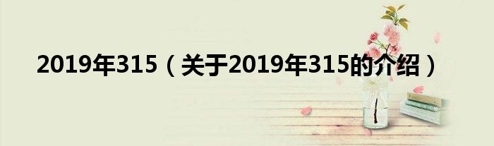 大家好,小新来为大家解答以上的问题。2019年315,关于2019年315的介绍很多人还不知道,现在让我们一起来看看吧!