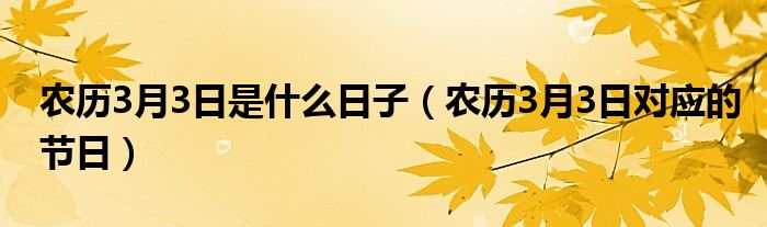 大家好,伊人来为大家解答以上问题。农历3月3日是什么日子,农历3月3日对应的节日很多人还不知道,现在让我们一起来看看吧!