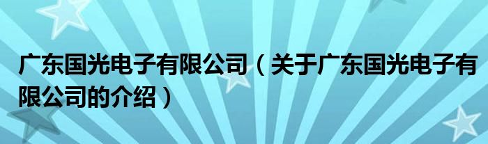 大家好,小新来为大家解答以上的问题。广东国光电子有限公司,关于广东国光电子有限公司的介绍很多人还不知道,现在让我们一起来看看吧!