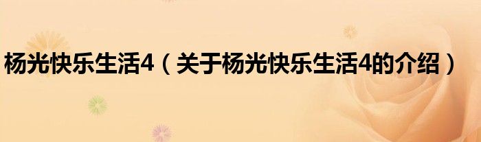 大家好,小新来为大家解答以上的问题。杨光快乐生活4,关于杨光快乐生活4的介绍很多人还不知道,现在让我们一起来看看吧!