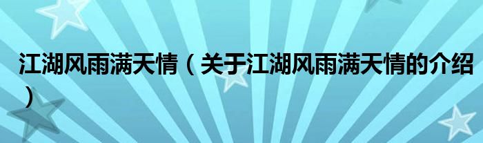 大家好,小新来为大家解答以上的问题。江湖风雨满天情,关于江湖风雨满天情的介绍很多人还不知道,现在让我们一起来看看吧!