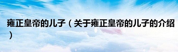 大家好,小新来为大家解答以上的问题。雍正皇帝的儿子,关于雍正皇帝的儿子的介绍很多人还不知道,现在让我们一起来看看吧!