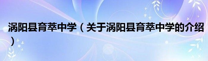 大家好,小新来为大家解答以上的问题。涡阳县育萃中学,关于涡阳县育萃中学的介绍很多人还不知道,现在让我们一起来看看吧!
