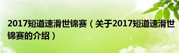 大家好,小新来为大家解答以上的问题。2017短道速滑世锦赛,关于2017短道速滑世锦赛的介绍很多人还不知道,现在让我们一起来看看吧!