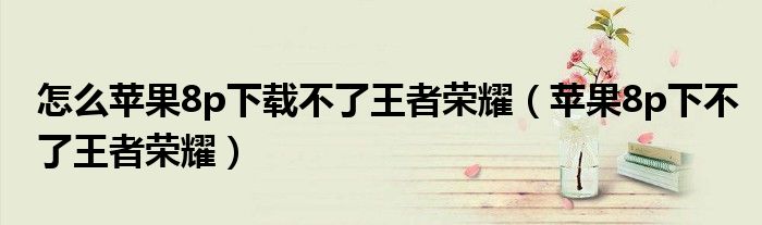 大家好,伊人来为大家解答以上问题。怎么苹果8p下载不了王者荣耀,苹果8p下不了王者荣耀很多人还不知道,现在让我们一起来看看吧!