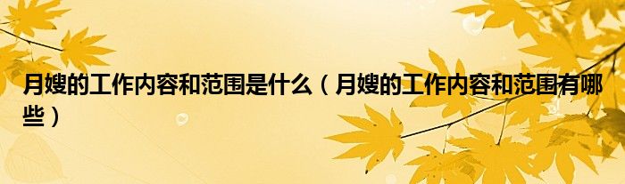 大家好,伊人来为大家解答以上问题。月嫂的工作内容和范围是什么,月嫂的工作内容和范围有哪些很多人还不知道,现在让我们一起来看看吧!