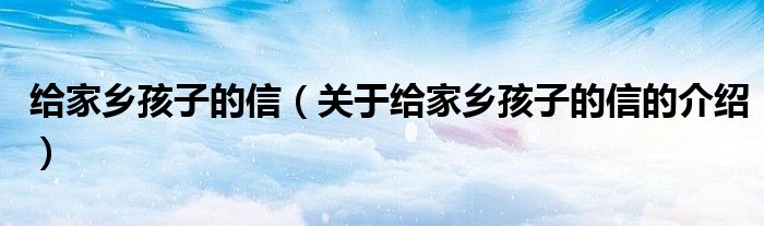 大家好,小新来为大家解答以上的问题。给家乡孩子的信,关于给家乡孩子的信的介绍很多人还不知道,现在让我们一起来看看吧!