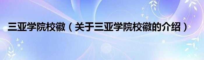 大家好,小新来为大家解答以上的问题。三亚学院校徽,关于三亚学院校徽的介绍很多人还不知道,现在让我们一起来看看吧!