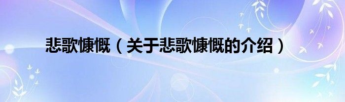 大家好,小新来为大家解答以上的问题。悲歌慷慨,关于悲歌慷慨的介绍很多人还不知道,现在让我们一起来看看吧!