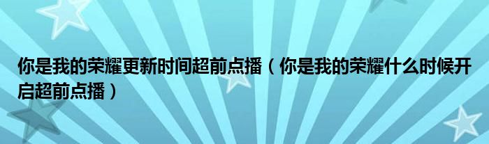 大家好,伊人来为大家解答以上问题。你是我的荣耀更新时间超前点播,你是我的荣耀什么时候开启超前点播很多人还不知道,现在让我们一起来看看吧!