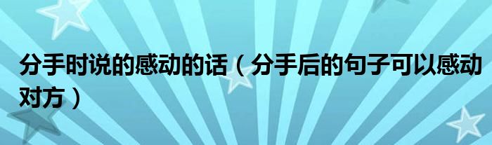 大家好,伊人来为大家解答以上问题。分手时说的感动的话,分手后的句子可以感动对方很多人还不知道,现在让我们一起来看看吧!