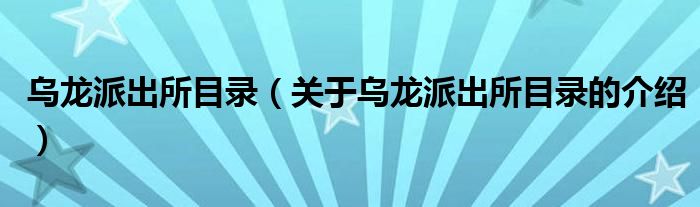 大家好,小新来为大家解答以上的问题。乌龙派出所目录,关于乌龙派出所目录的介绍很多人还不知道,现在让我们一起来看看吧!