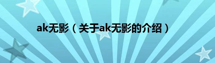 大家好,小新来为大家解答以上的问题。ak无影,关于ak无影的介绍很多人还不知道,现在让我们一起来看看吧!