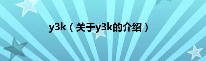 大家好,小新来为大家解答以上的问题。y3k,关于y3k的介绍很多人还不知道,现在让我们一起来看看吧!