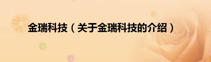 大家好,小新来为大家解答以上的问题。金瑞科技,关于金瑞科技的介绍很多人还不知道,现在让我们一起来看看吧!