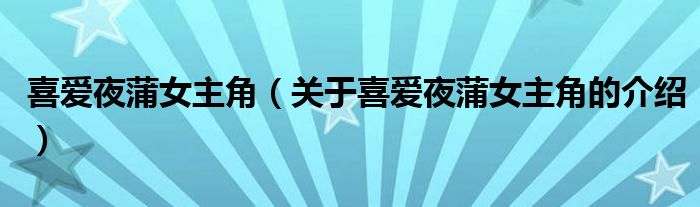 大家好,小新来为大家解答以上的问题。喜爱夜蒲女主角,关于喜爱夜蒲女主角的介绍很多人还不知道,现在让我们一起来看看吧!