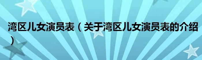 大家好,小新来为大家解答以上的问题。湾区儿女演员表,关于湾区儿女演员表的介绍很多人还不知道,现在让我们一起来看看吧!
