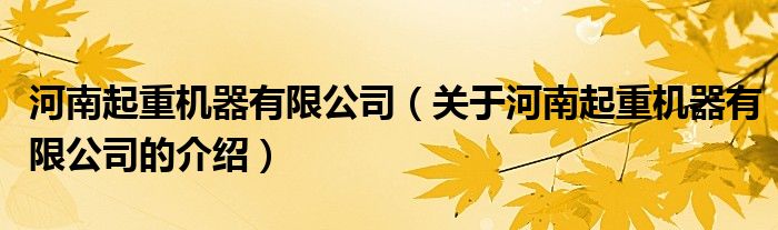 大家好,小新来为大家解答以上的问题。河南起重机器有限公司,关于河南起重机器有限公司的介绍很多人还不知道,现在让我们一起来看看吧!