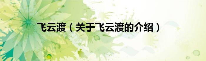 大家好,小新来为大家解答以上的问题。飞云渡,关于飞云渡的介绍很多人还不知道,现在让我们一起来看看吧!
