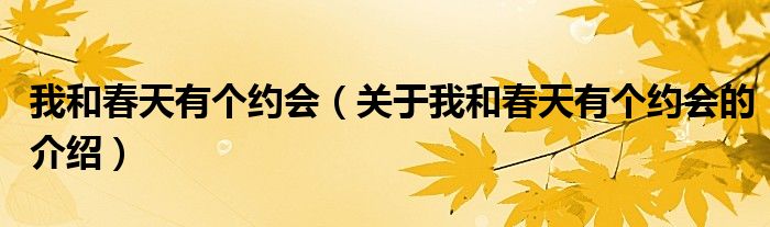 大家好,小新来为大家解答以上的问题。我和春天有个约会,关于我和春天有个约会的介绍很多人还不知道,现在让我们一起来看看吧!