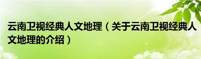 大家好,小新来为大家解答以上的问题。云南卫视经典人文地理,关于云南卫视经典人文地理的介绍很多人还不知道,现在让我们一起来看看吧!