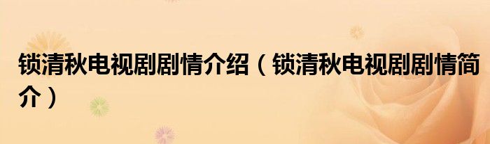 大家好,伊人来为大家解答以上问题。锁清秋电视剧剧情介绍,锁清秋电视剧剧情简介很多人还不知道,现在让我们一起来看看吧!