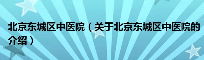 大家好,小新来为大家解答以上的问题。北京东城区中医院,关于北京东城区中医院的介绍很多人还不知道,现在让我们一起来看看吧!