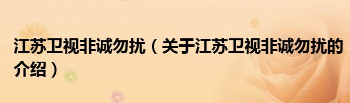 大家好,小新来为大家解答以上的问题。江苏卫视非诚勿扰,关于江苏卫视非诚勿扰的介绍很多人还不知道,现在让我们一起来看看吧!