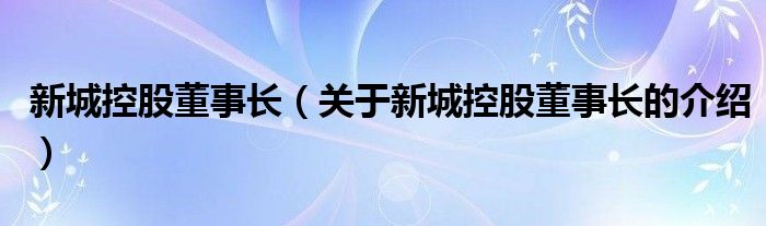 大家好,小新来为大家解答以上的问题。新城控股董事长,关于新城控股董事长的介绍很多人还不知道,现在让我们一起来看看吧!
