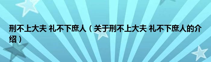 大家好,小新来为大家解答以上的问题。刑不上大夫 礼不下庶人,关于刑不上大夫 礼不下庶人的介绍很多人还不知道,现在让我们一起来看看吧!