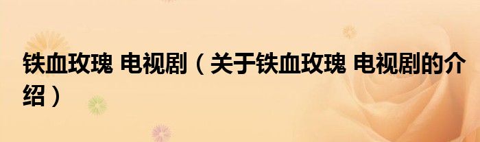 大家好,小新来为大家解答以上的问题。铁血玫瑰 电视剧,关于铁血玫瑰 电视剧的介绍很多人还不知道,现在让我们一起来看看吧!