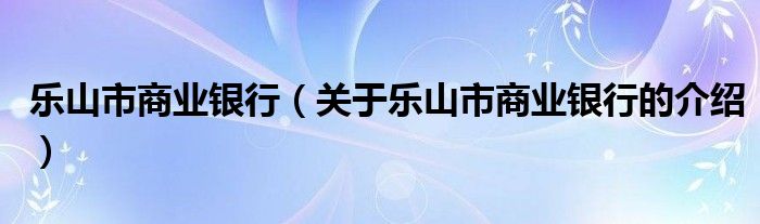 大家好,小新来为大家解答以上的问题。乐山市商业银行,关于乐山市商业银行的介绍很多人还不知道,现在让我们一起来看看吧!