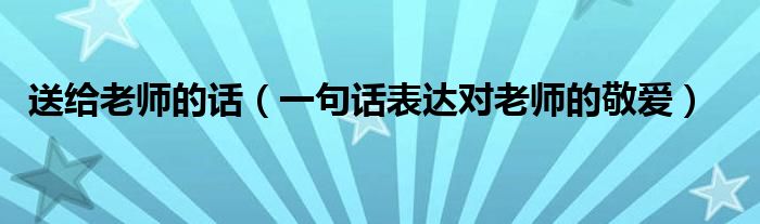 大家好,伊人来为大家解答以上问题。送给老师的话,一句话表达对老师的敬爱很多人还不知道,现在让我们一起来看看吧!