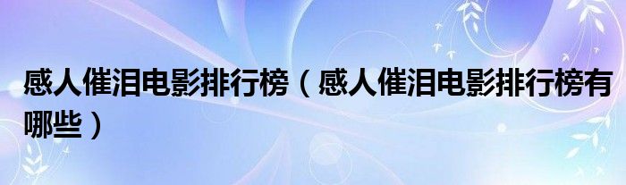 大家好,伊人来为大家解答以上问题。感人催泪电影排行榜,感人催泪电影排行榜有哪些很多人还不知道,现在让我们一起来看看吧!