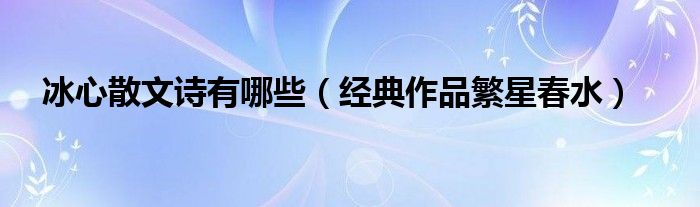 大家好,伊人来为大家解答以上问题。冰心散文诗有哪些,经典作品繁星春水很多人还不知道,现在让我们一起来看看吧!