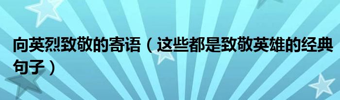大家好,伊人来为大家解答以上问题。向英烈致敬的寄语,这些都是致敬英雄的经典句子很多人还不知道,现在让我们一起来看看吧!